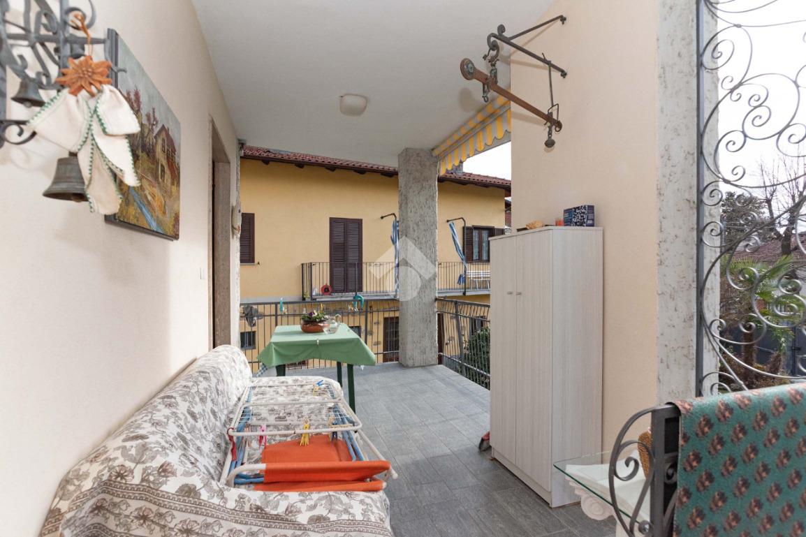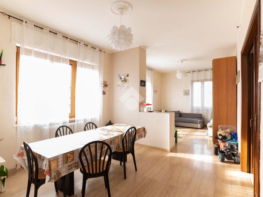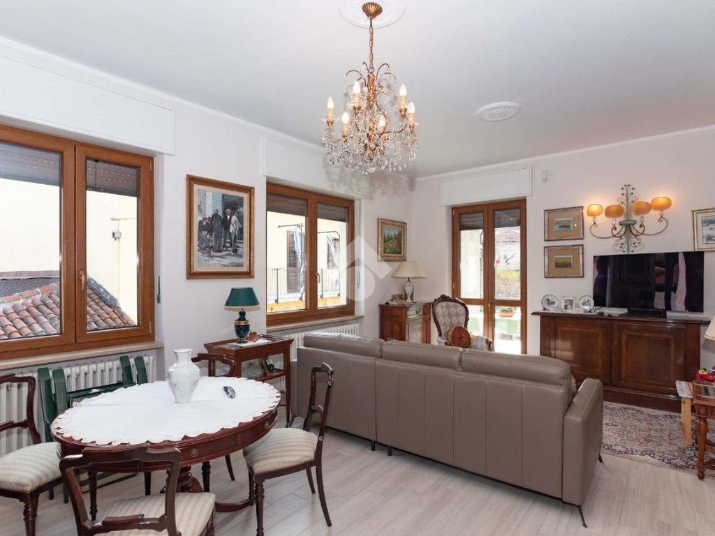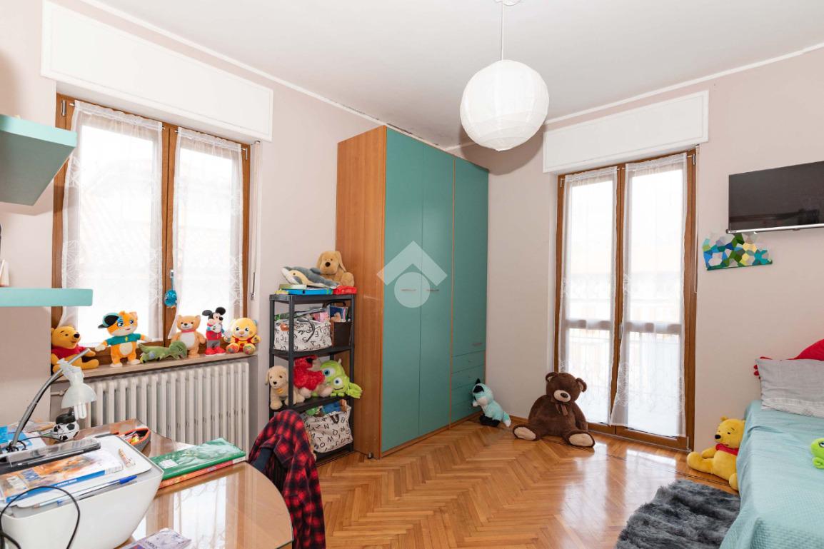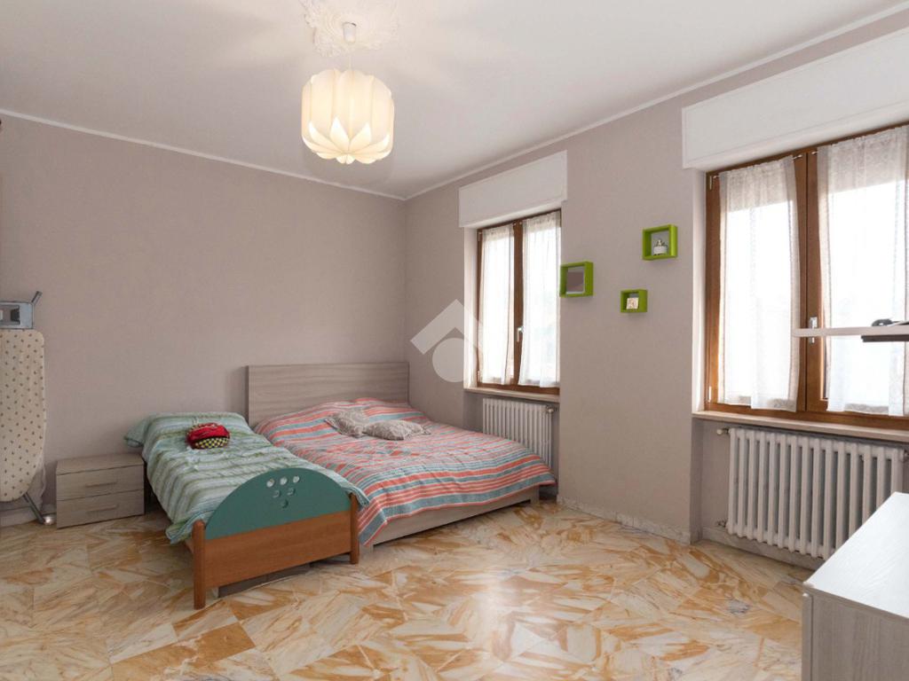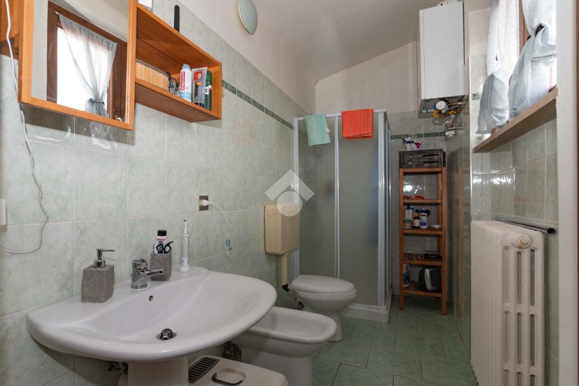 Il piano centrale è composto da un ampio ingresso, salone, cucina, due camere dalle generose dimensioni e dal bagno corredato di doccia; la soluzione è circondata da due balconi e da un terrazzino.